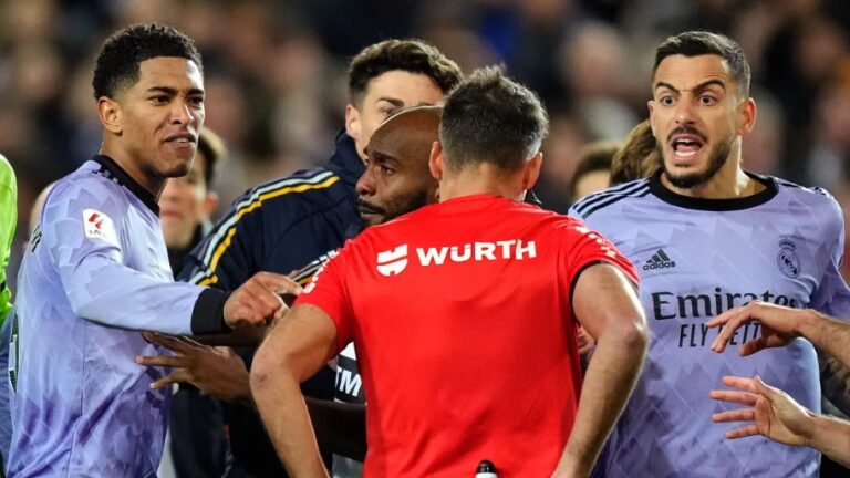 终场哨响后,裘德·贝林厄姆被红牌罚下,皇马在对阵瓦伦西亚的比赛中进球被否认