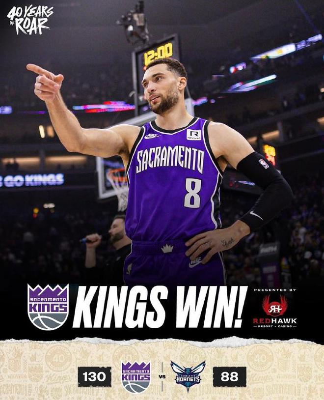 稳居西部第十!国王队击败黄蜂队,拉文成为NBA历史上第一位在多场比赛中得分40+且真实命中率达到100%的球员